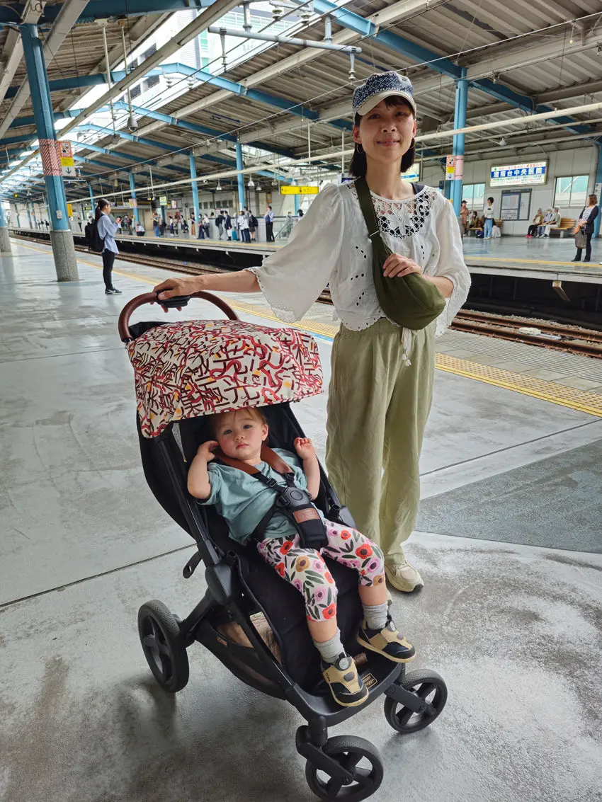 Once we arrived, we had an amazing month in early Autumn with summer like temperature for our whole stay. It was great being able to relax and let her Grandma take care of both of us! The nano urban™ was a great size for our little Japanese house, folding up in the entrance when not in use. It even fit perfectly in our tiny Japanese car and was a breeze to navigate onto the trains and get around stations and shops in the crowded urban streets of Japan. The gorgeous and eye-catching Year of the Snake pattern was so fun to have as well, it was tough to keep it a secret when I just wanted to post pictures all the time.