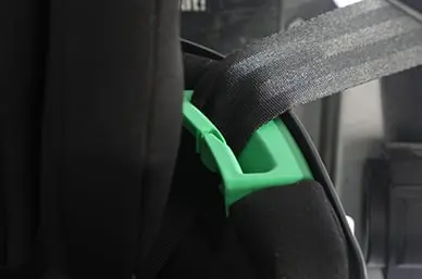The green belt guides on the car seat indicates that you have a car seat that is R129 certified. Use these green guides to direct you when using your vehicle seat belt.