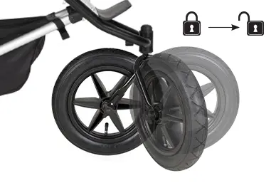 2-mode front wheel to lock back (control over uneven terrain) OR 360° full swivel (maneouvrabilty for navigating tight spaces)
